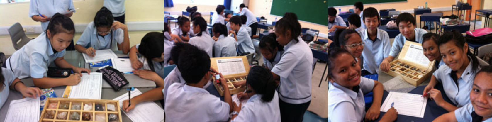 The Sec 1 pupils had their hands on the rocks during their Geography lessons. They had to identify the various characteristics and make a comparative study on the rock samples. Each rock has its own character and uses. Working in groups, they had to answer a set of guiding questions that help them in their own investigation and discussions.