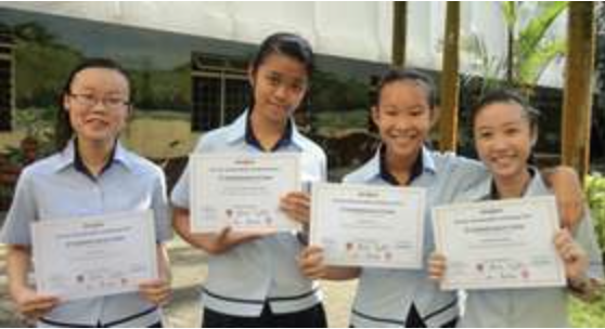 Team One, BusyBees, consisted of Jasmine Lin, Eunice Angelica, Jew Sok Fang and Kung Hak Yee from Sec 3 NA worked with Ms Foong and did a study on the eco-friendly practices of 120 people of different age groups and gender. For their effort, they were awarded Certificates of Commendation.